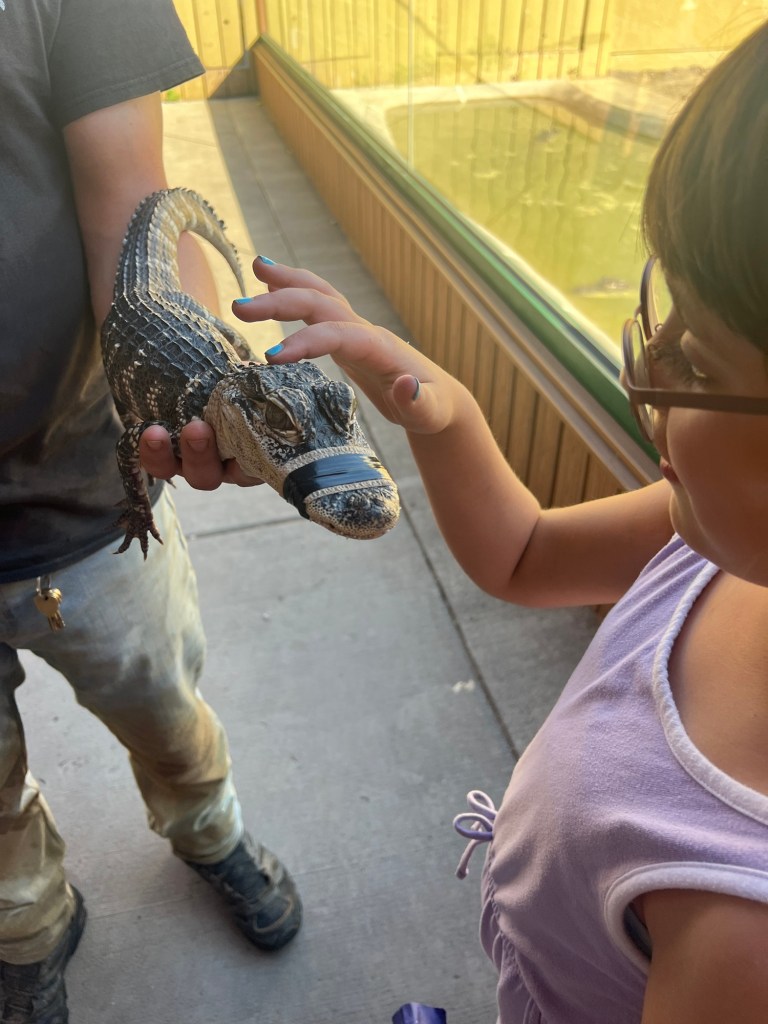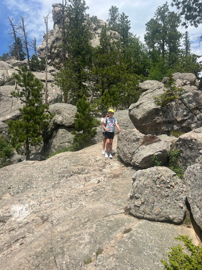 We got to Rapid City & checked into our hotel then hit the Reptile Gardens! The girls love anything to do with animals, wild life, etc. so I knew this would be a hit! There was a LOT to see here & it was for sure a hit with the girls! The girls got to touch snakes (NOT FOR ME HA!) & a baby crocodile! After the gardens we went to dinner at a local brewery & ice cream from a local ice cream shop!