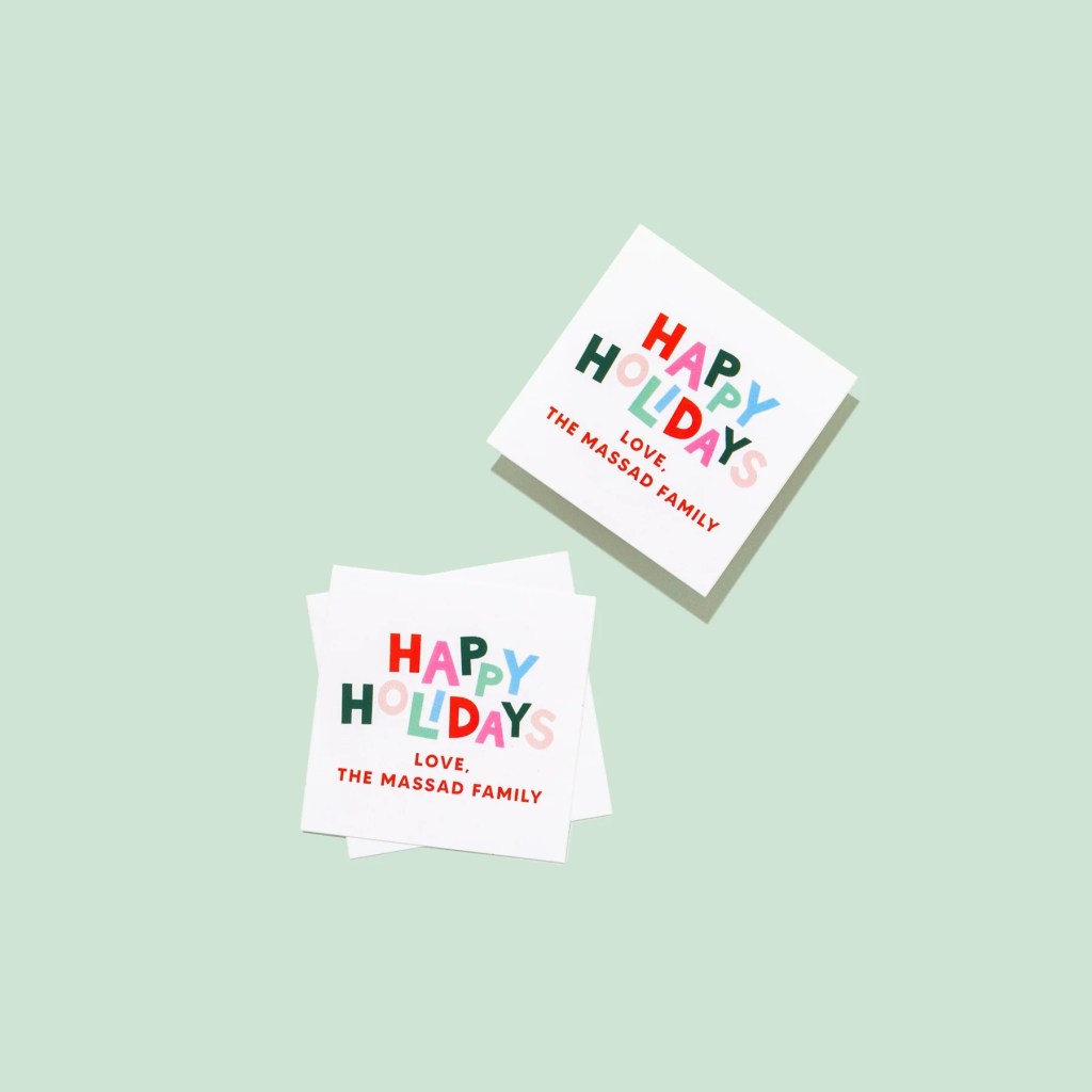 2. Happy Holidays Personalized Stickers & Tags — I absolutely love these! Listen we are all busy — especially during the holidays so these are great for a grab & go when you are rushing to go to a holiday party or dropping off at school! I love that you can personalize them & they are so easy to place on any sort of gift! I use these for my treat containers when I had those out during the week of Christmas! (Click the photo to shop)