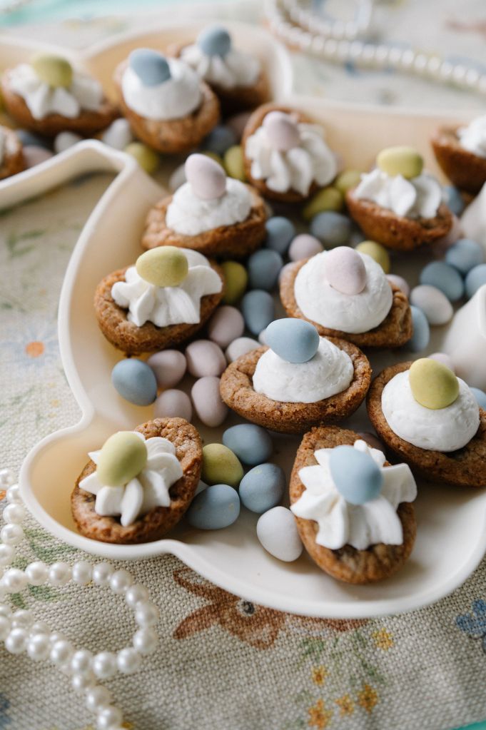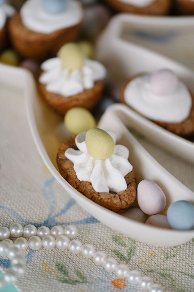 I then used butter cream for the yolk part after the “eggs” cooled.. you can use any color you like, I just wanted it to be simple with white. I would top them with either Easter themed sprinkles or like I did.. a Cadbury egg! Seriously so fun & I bet would be the best hit for your Easter spread!